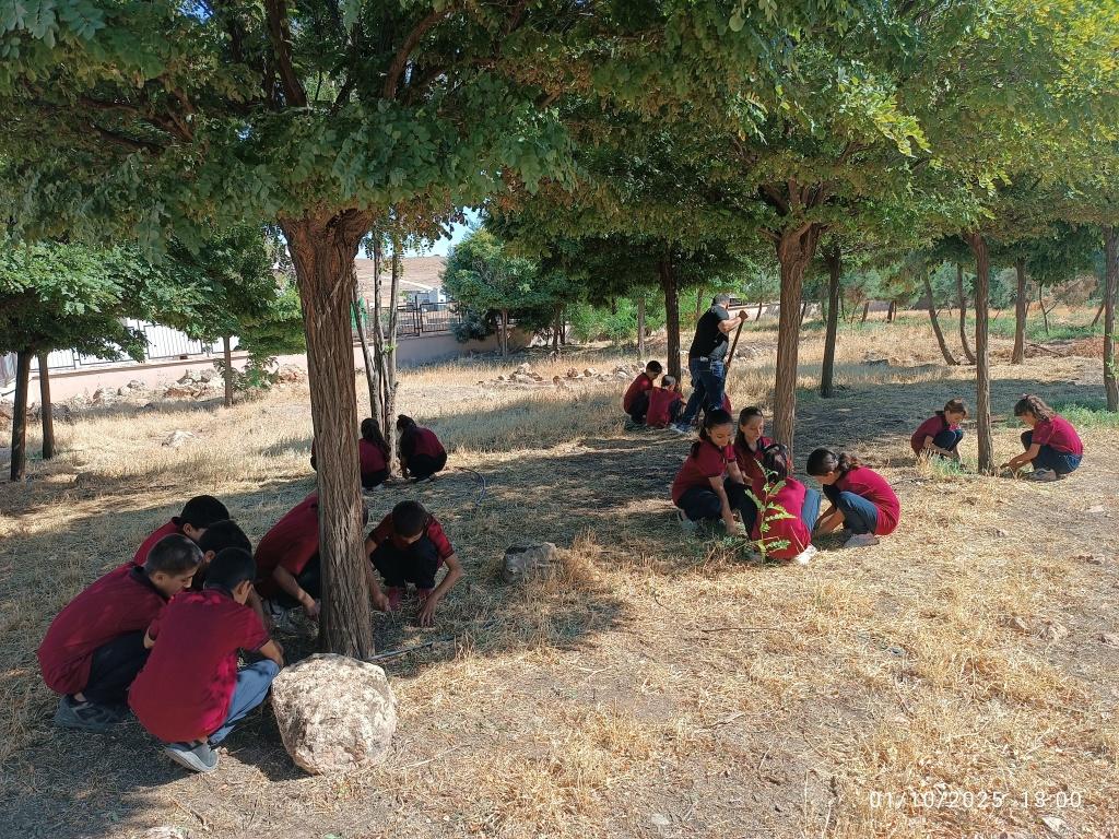 Bugün öğrencilerimizle birlikte okul bahçemizdeki ağaçların topraklarını havalandırdık. Onlara ağaçların sadece gölge veren değil, aynı zamanda iklimi dengeleyen, çevremizi koruyan ve geleceğe nefes olan canlılar olduğunu anlattık.